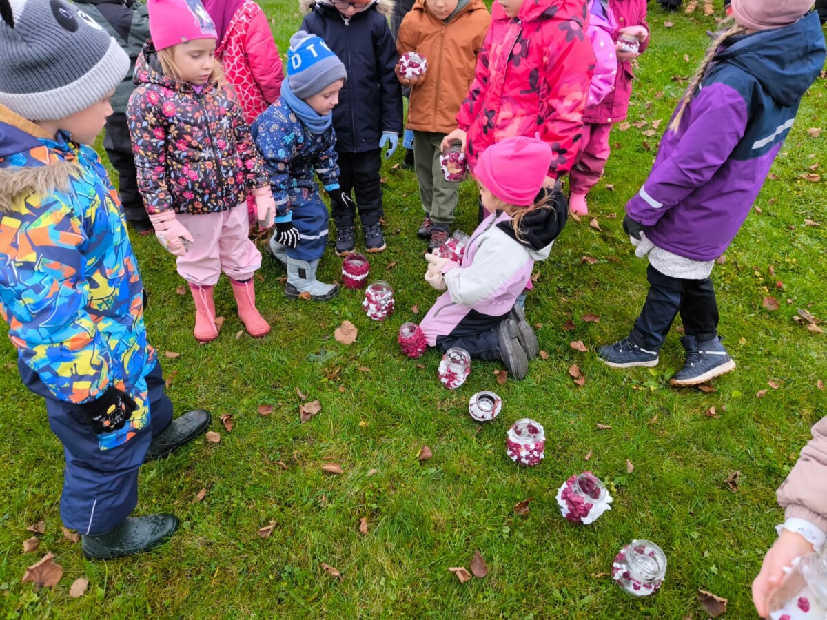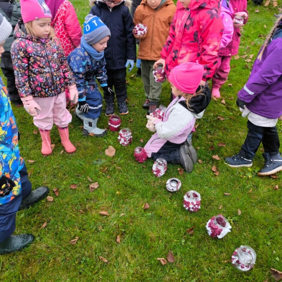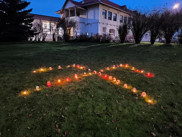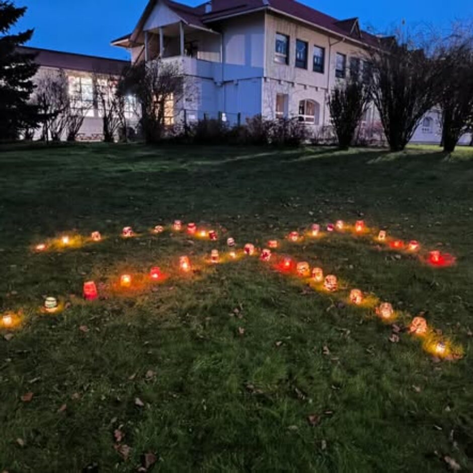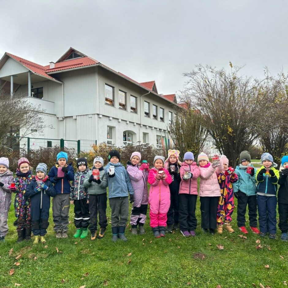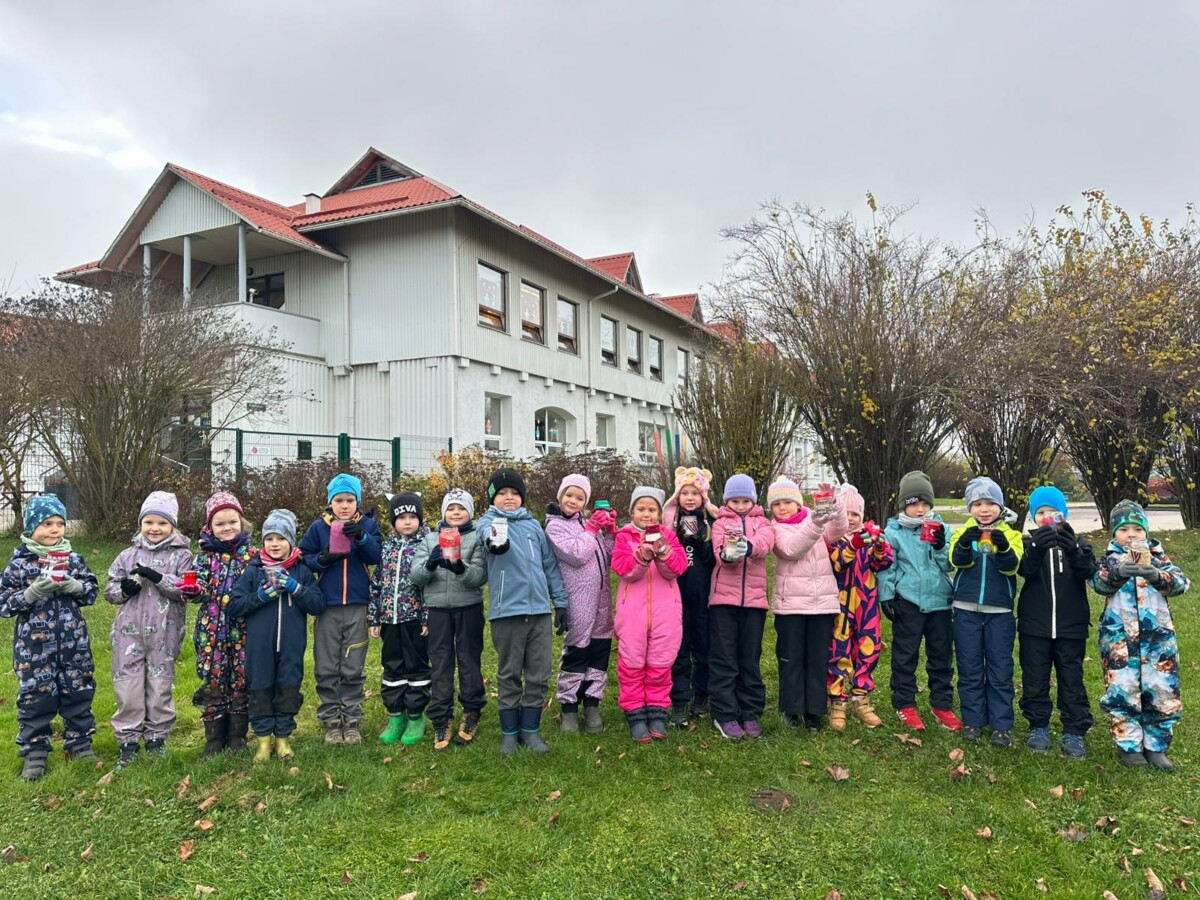 “Liepu” un “Kļavu” grupiņu bērni, lai godinātu Latvijas Brīvības cīnītājus, pie skolas izlika pašu rotātus gaismas lukturīšus.