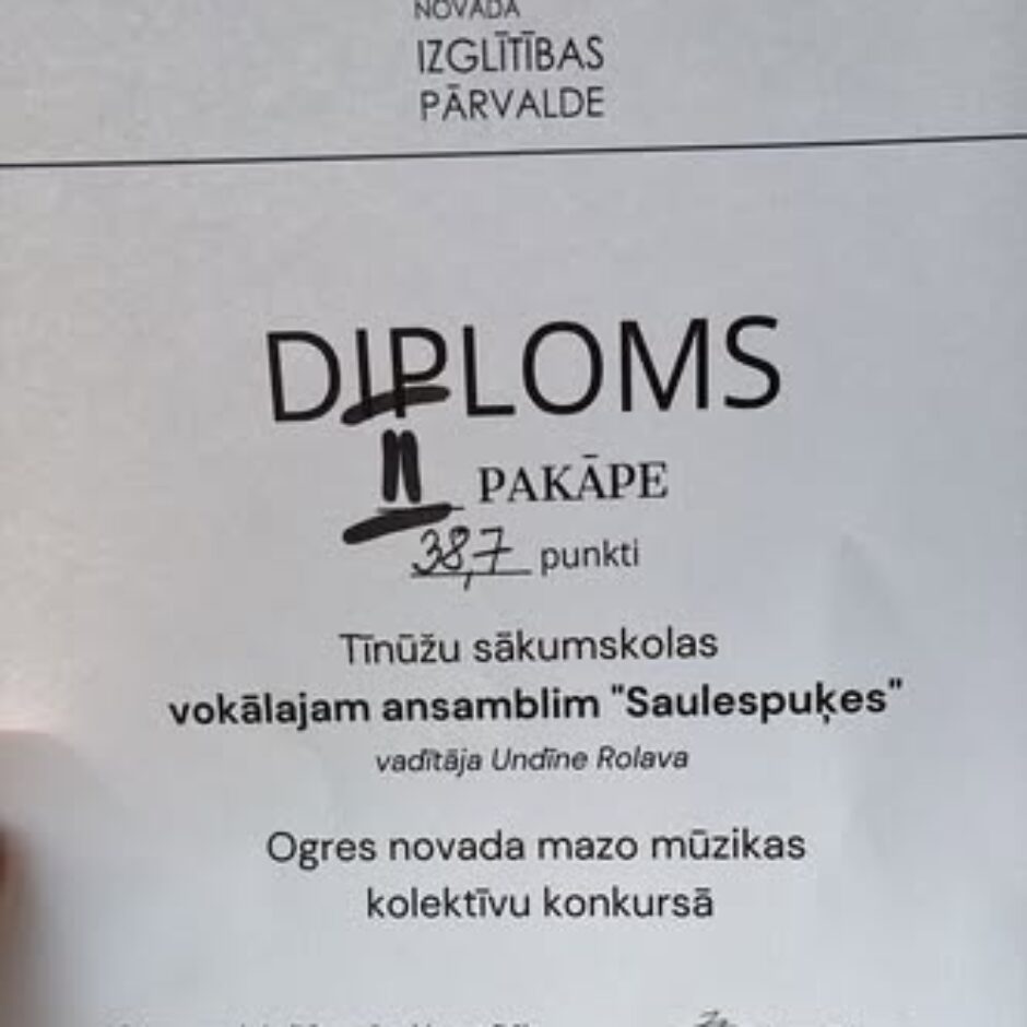 Mazās dziedātājas 17.martā piedalījās Ogres novada mazo mūzikas kolektīvu konkursā. Paldies dziedātājām un mūzikas skolotājai Undīnei Rolavai!